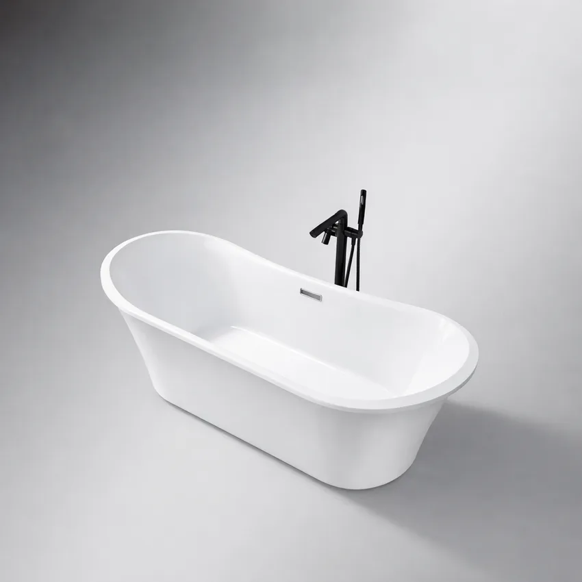 אמבטיה מונחת אובלית עשויה מחומר אקרילי מוחזקת בפייברגלס אורך 180 ס"מ צבע לבן מבריק דגם Belize