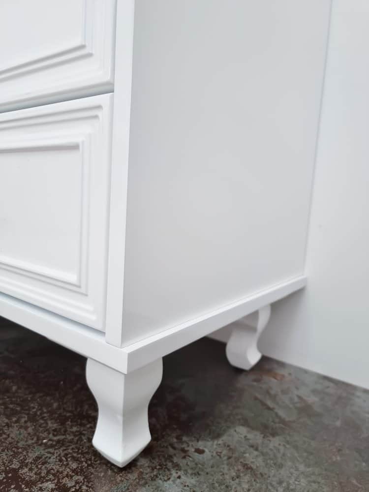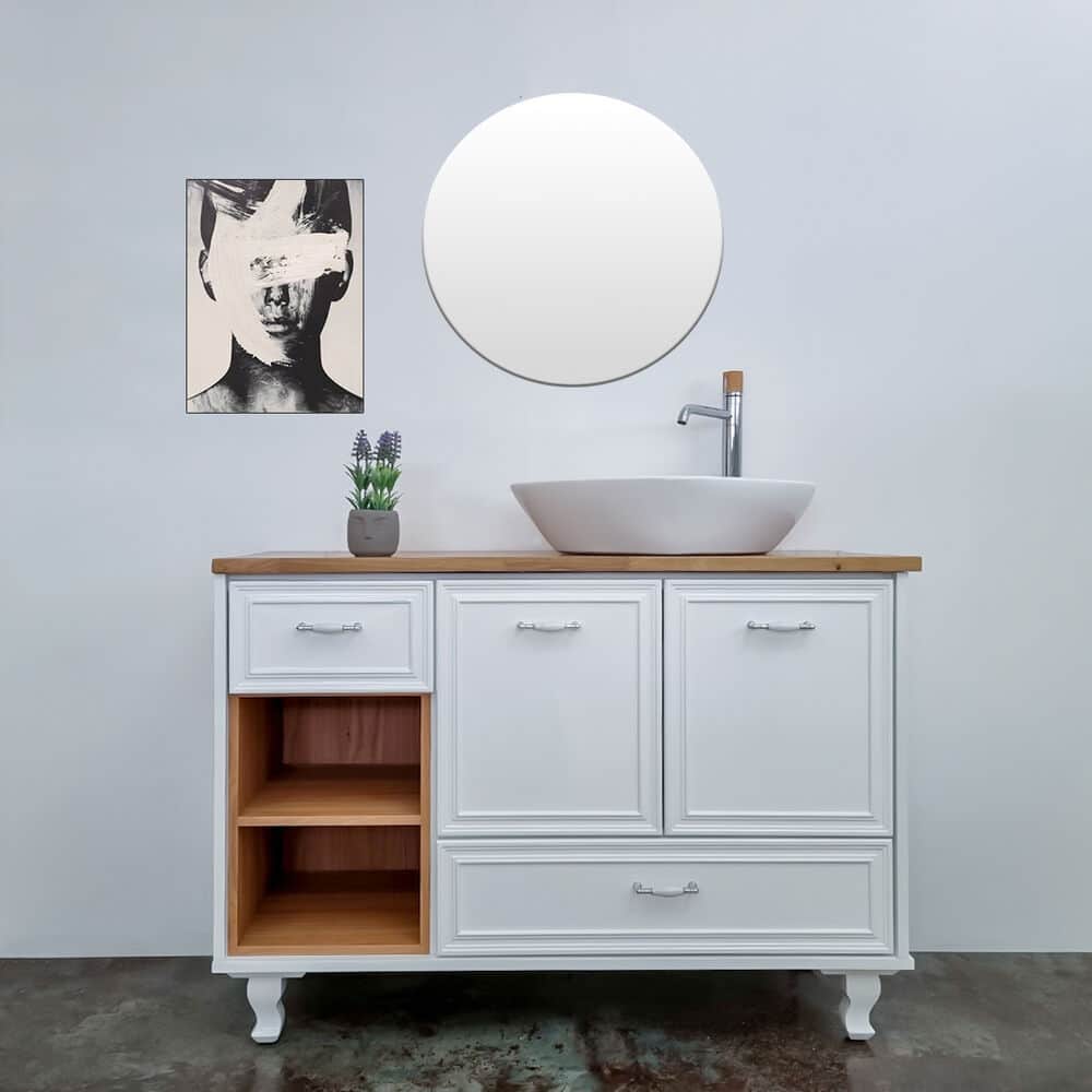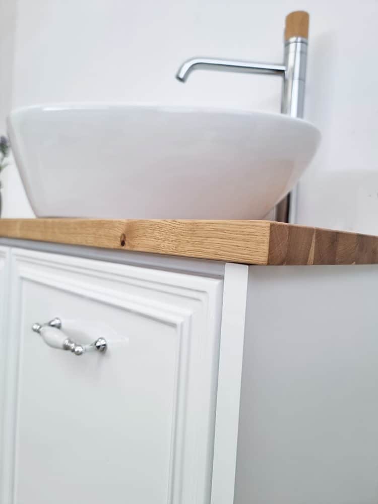 ארון אמבטיה עומד רוחב 100 ס"מ בעומק 46 ס"מ צבע לבן מט עם משטח עץ מלא להנחת כיור מונח דגם מאסט 100