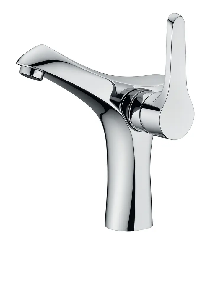 ברז לכיור רחצה מגיע עם פיה קבועה צבע ניקל מבריק דגם HM0127CH