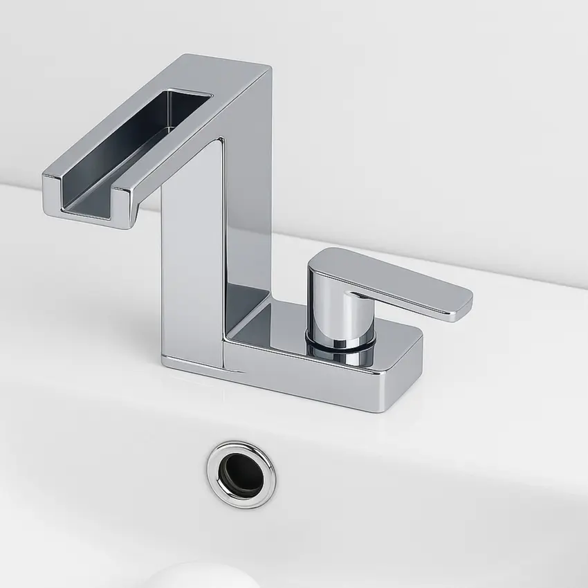 ברז לכיור רחצה מגיע עם פיה קבועה צבע ניקל מבריק דגם 27310