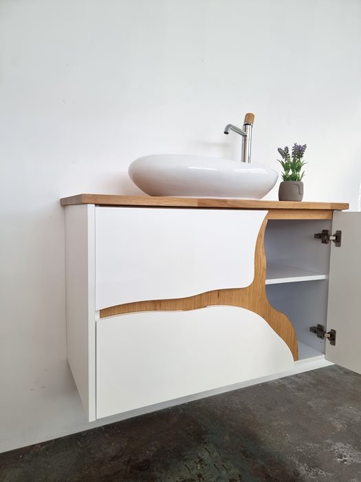 ברז, מראה, כיור מונח, ונטיל וכל מוצר אחר שמשלים עיצוב הארון להמחשה בלבד