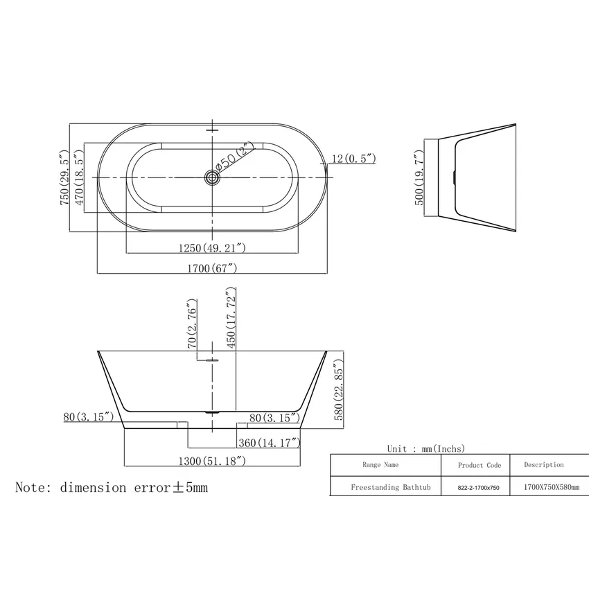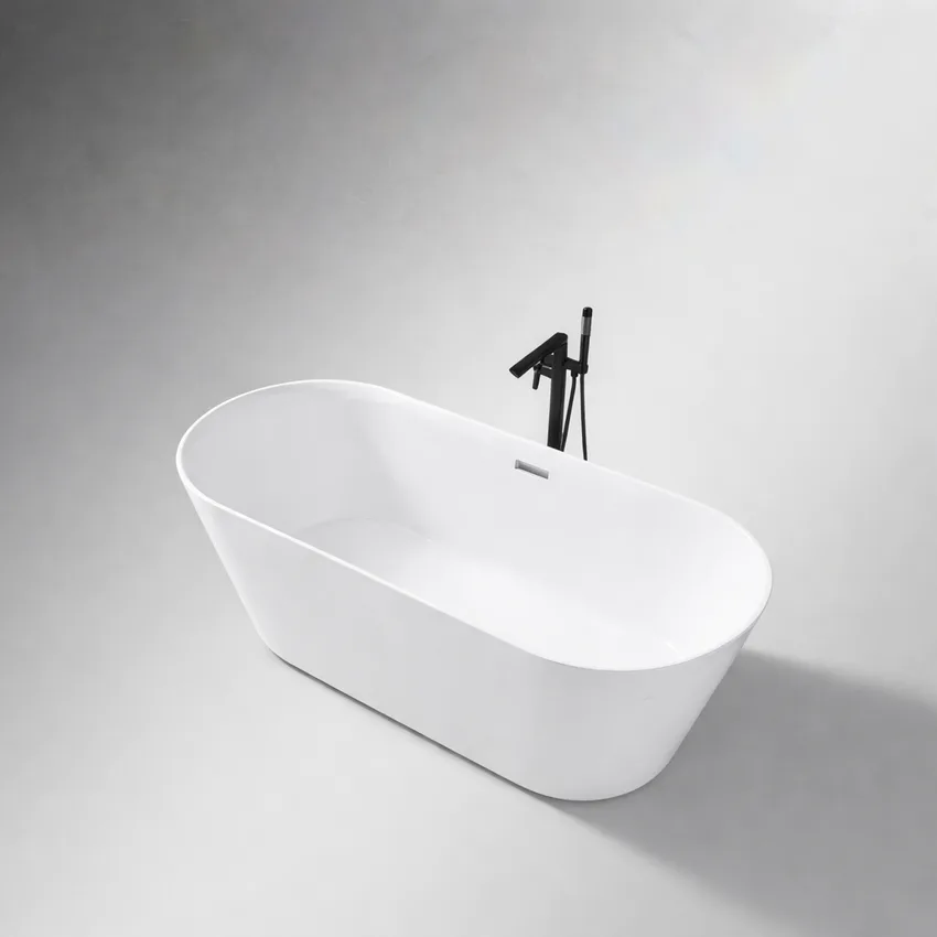 אמבטיה מונחת אובלית עשויה מחומר אקרילי מוחזקת בפייברגלס אורך 170 ס"מ צבע לבן מבריק דגם london