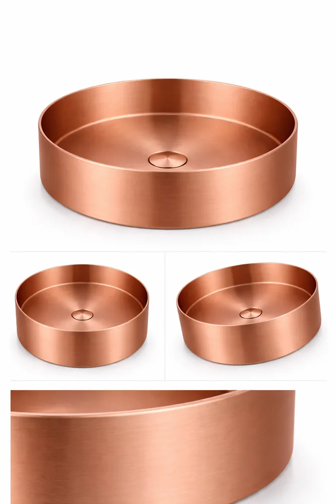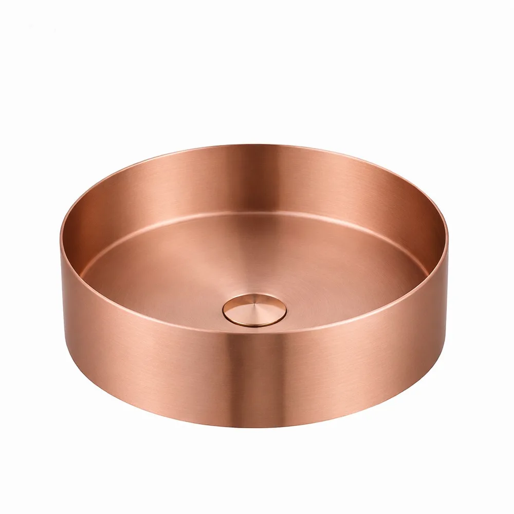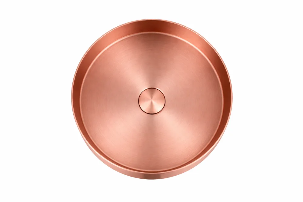 כיור רחצה מונח מעוגל בעיצוב חלק עשוי מנירוסטה קוטר 36 ס"מ צבע רוז גולד מט PVD דגם B-4456