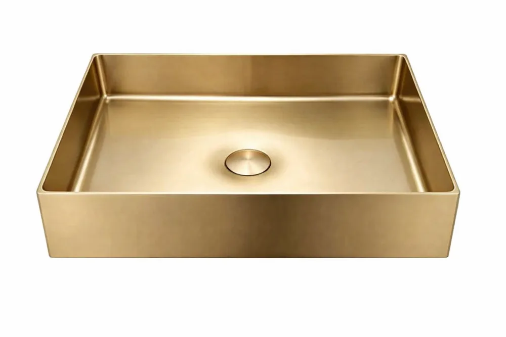 כיור רחצה מונח מלבני בעיצוב חלק עשוי מנירוסטה רוחב 50 ס"מ ועומק 35 ס"מ צבע זהב מט PVD דגם G-8876