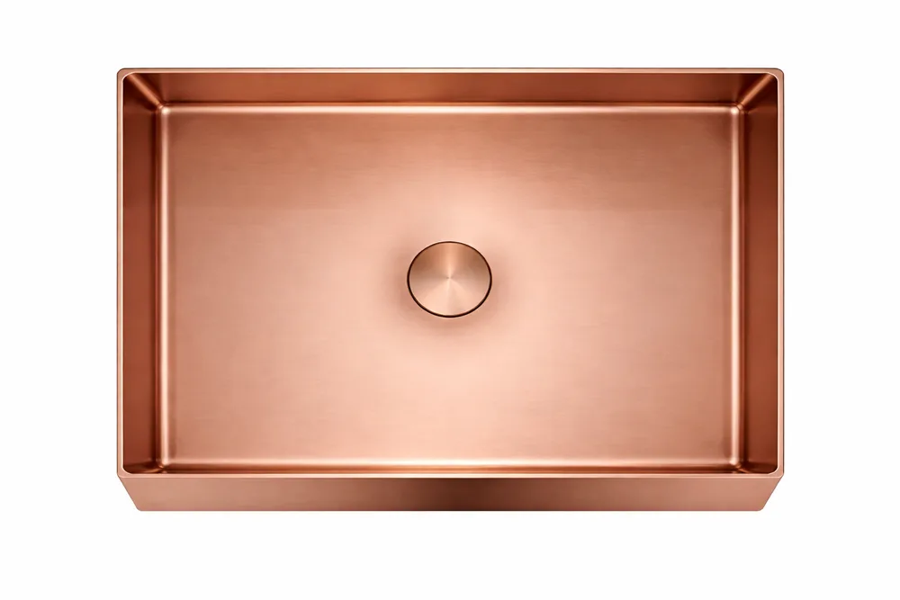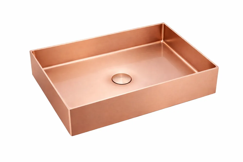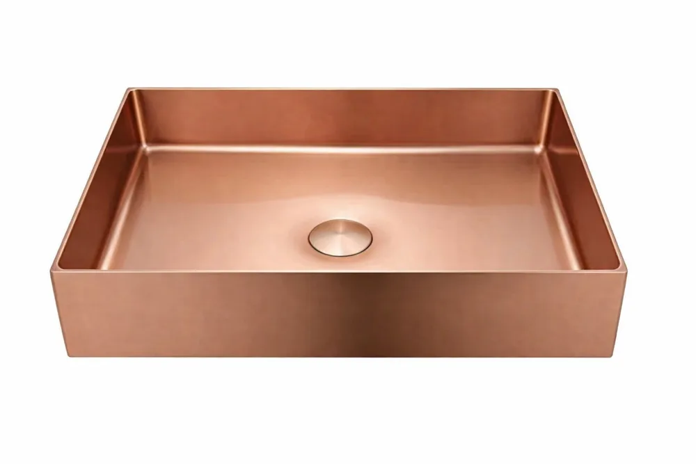כיור רחצה מונח מלבני בעיצוב חלק עשוי מנירוסטה רוחב 60 ס"מ ועומק 35 ס"מ צבע רוז גולד מט PVD דגם B-6659