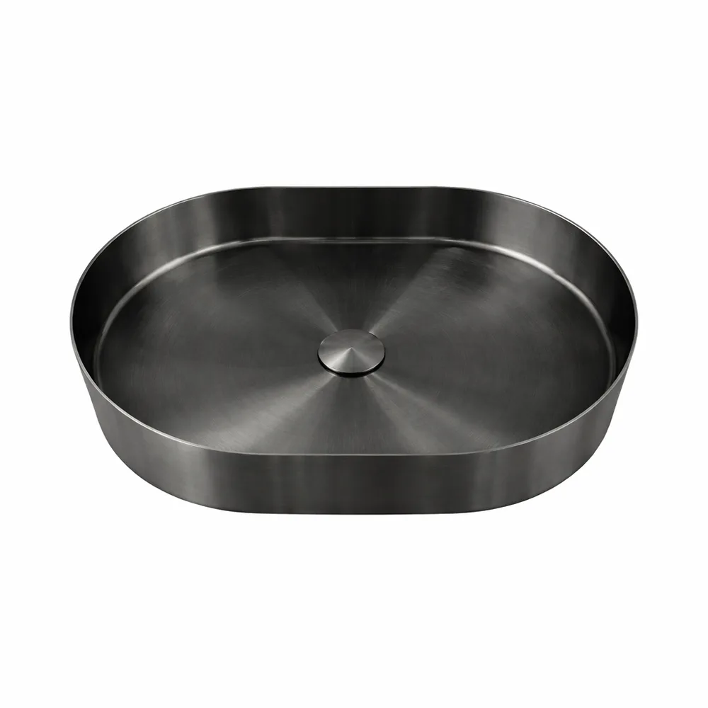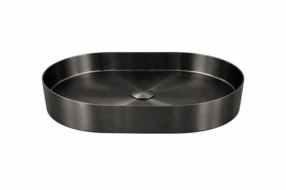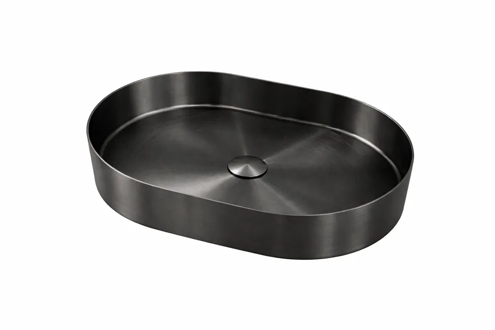 כיור רחצה מונח אובלי בעיצוב חלק עשוי מנירוסטה רוחב 58 ס"מ ועומק 36 ס"מ צבע גרפיט מט PVD דגם H-4437
