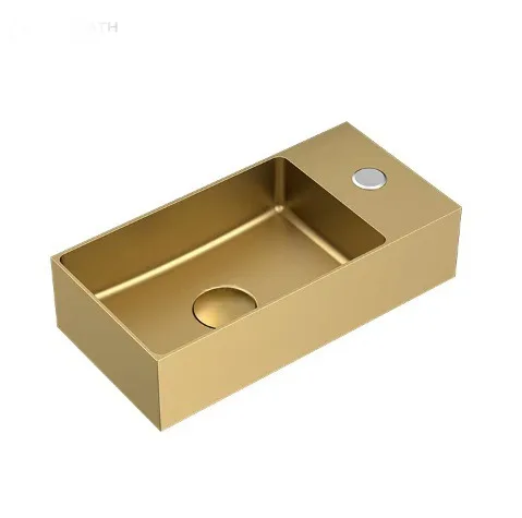 כיור רחצה מלבני עשוי מנירוסטה ניתן להשתמש ככיור מונח או ככיור תלוי רוחב 36.5 ס"מ ועומק 18 ס"מ צבע זהב מט PVD עם חור לברז דגם G-2215