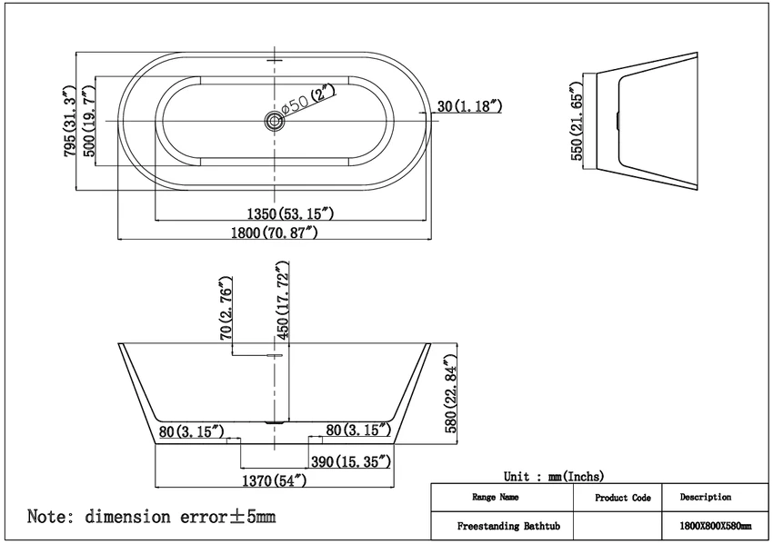 אמבטיה מונחת אובלית עשויה מחומר אקרילי מוחזקת בפייברגלס אורך 180 ס"מ צבע לבן מבריק דגם Aires 180