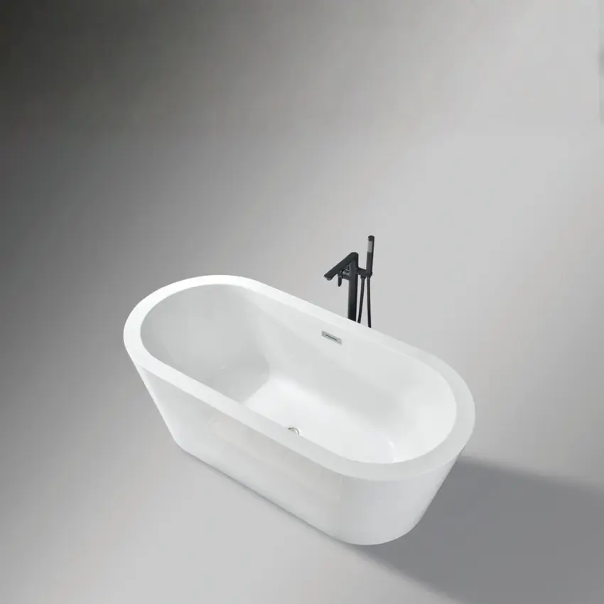אמבטיה מונחת אובלית עשויה מחומר אקרילי עם פייבר גלאס אורך 170 ס"מ צבע לבן מבריק דגם Lenox