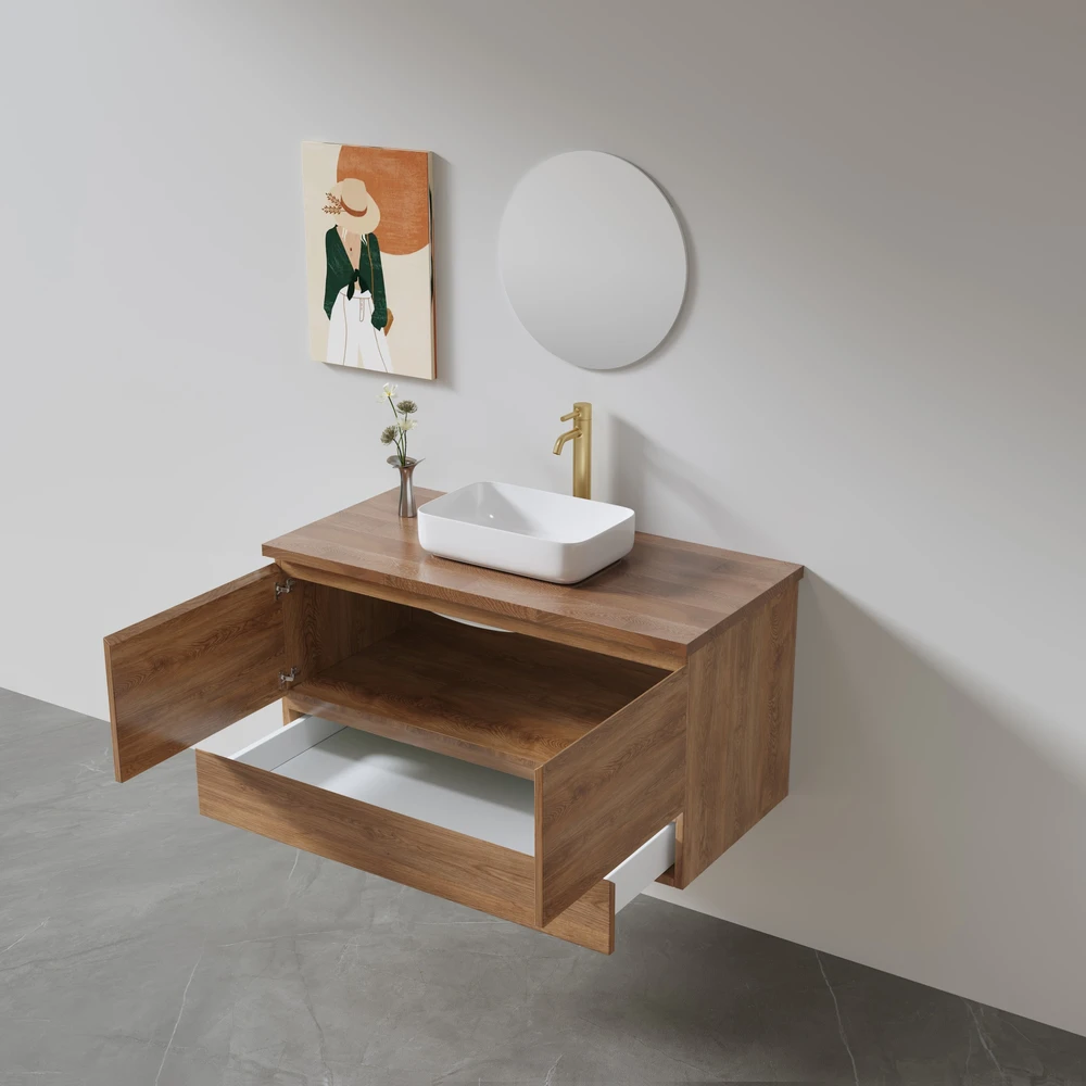 ברז, מראה, כיור מונח, ונטיל וכל מוצר אחר שמשלים עיצוב הארון להמחשה בלבד