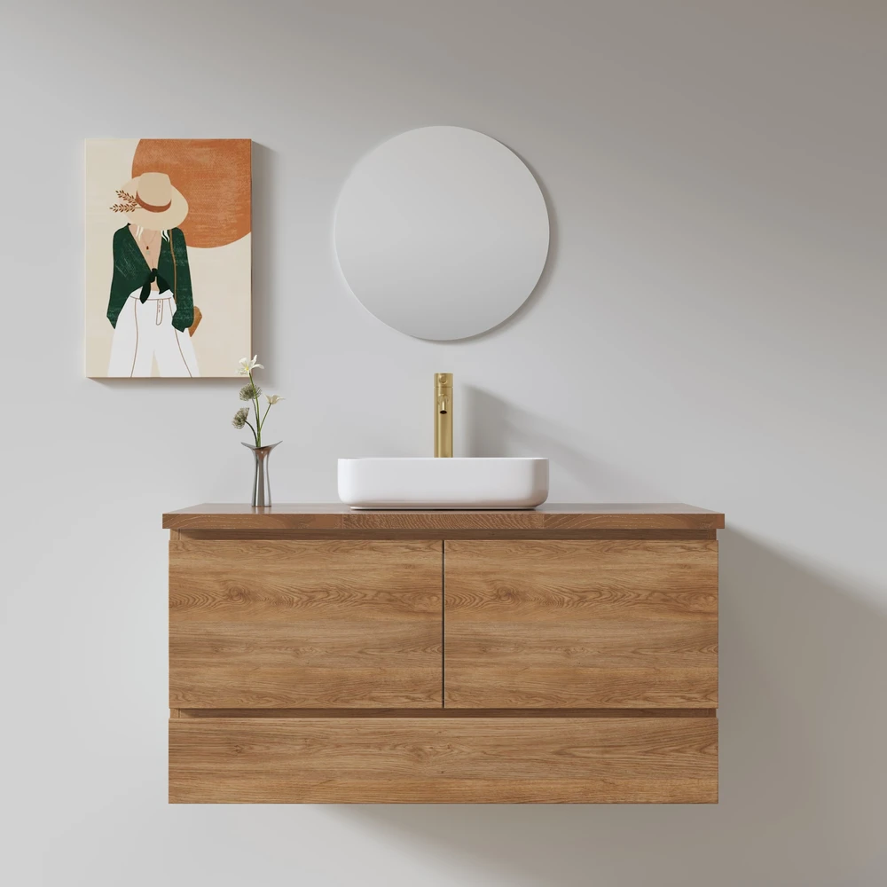 ברז, מראה, כיור מונח, ונטיל וכל מוצר אחר שמשלים עיצוב הארון להמחשה בלבד
