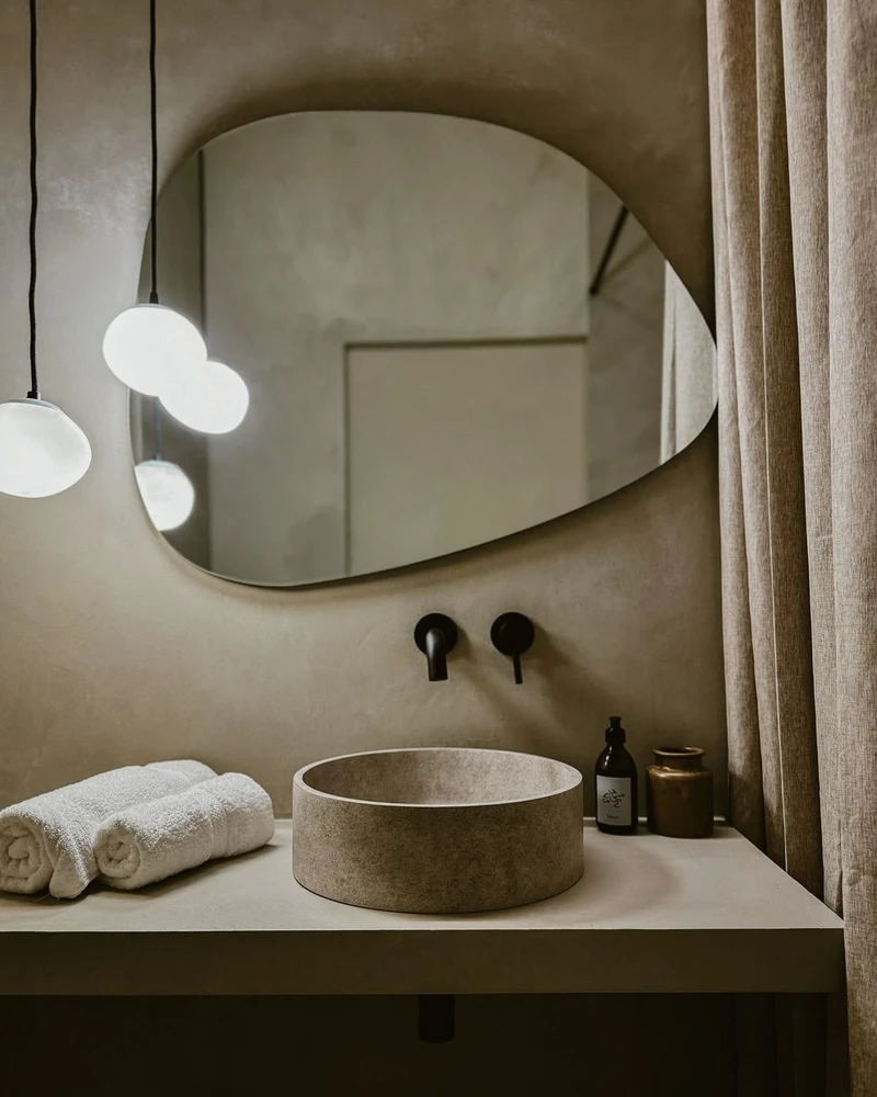 מראה מרחפת לתליה בצורה אמורפית ללא מסגרת רוחב 90 ס"מ גובה 80 ס"מ דגם M-765
