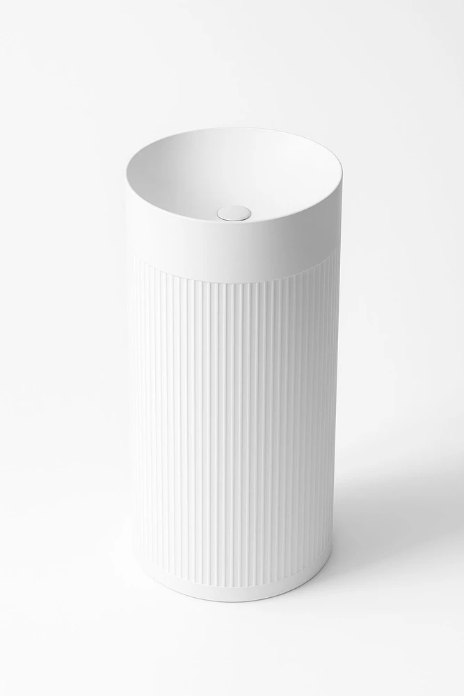 כיור רחצה חרס עומד מעוגל מחורץ רצפתי קוטר 41 ס"מ גובה 85 ס"מ לבן מבריק ללא חור לברז דגם סמוס