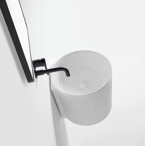 כיור רחצה מעוגל מחורץ תלוי קוטר 40 ס"מ צבע לבן מט בלי חור לברז דגם טאסוס