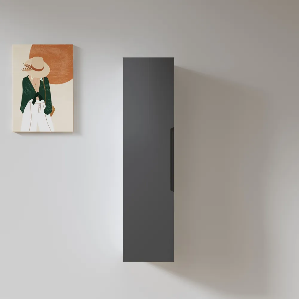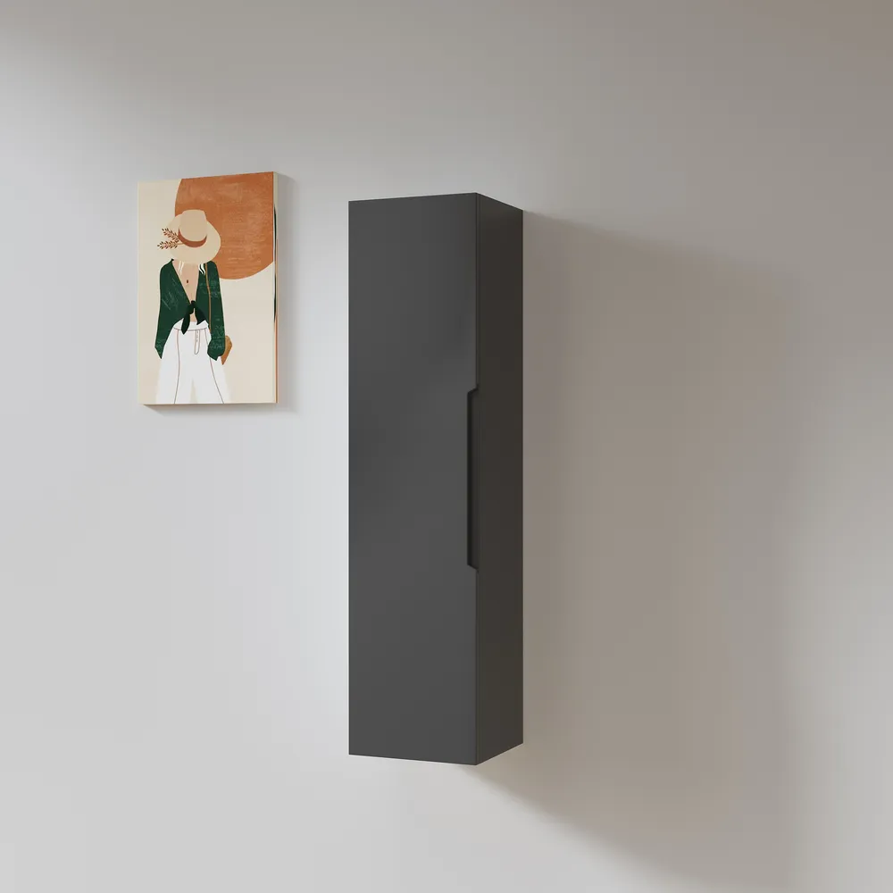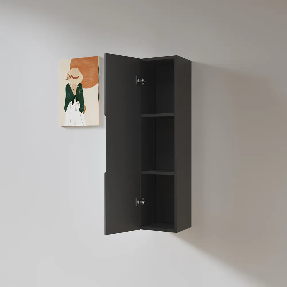 ארון שירות תלוי לאמבטיה גובה 90 ס"מ צבע שחור מט דגם רומי 90