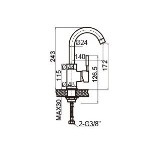 ברז רחצה עם פיה מסתובבת צבע אפור גרפיט דגם M7125