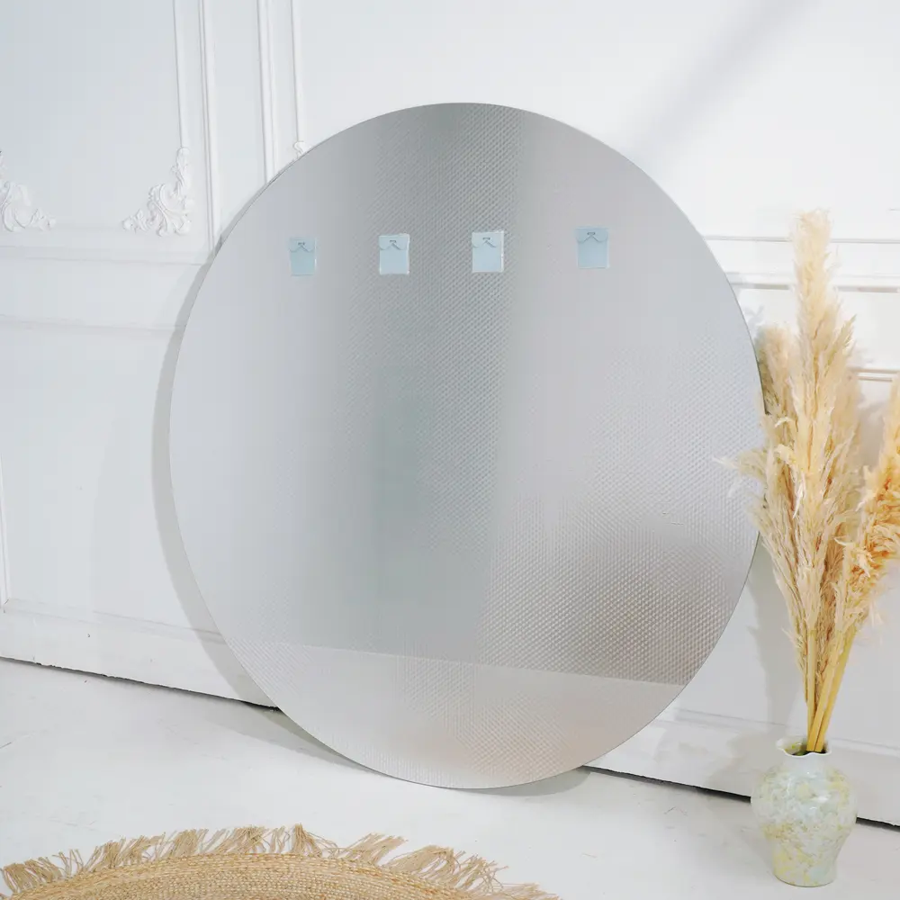 * עיצוב: מראת גוף בצורה עגולה מרחפת בלי מסגרת ובלי קנט שיפוע בקצה (חלקה)